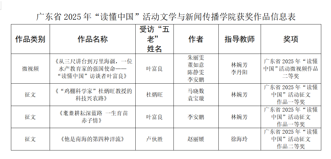 近日,广东省教育系统关心下一代工作委员会公布了2025年“读懂中国”活动评审结果。文学与新闻…