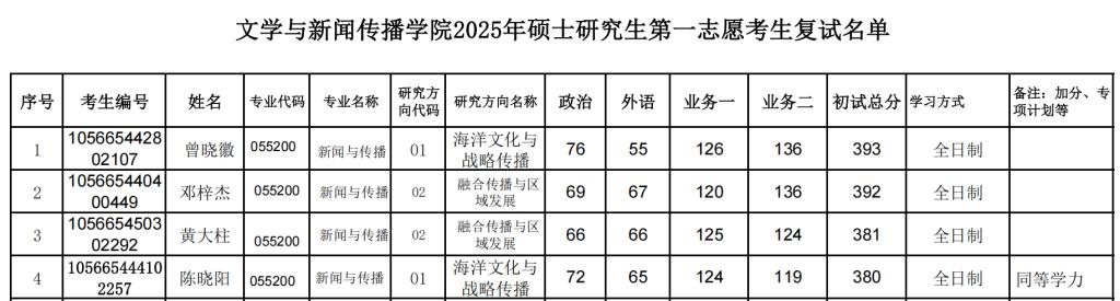 三、复试考生名单