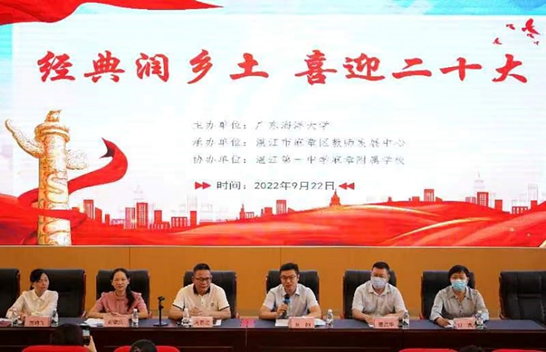 在公司语委的组织领导下,本次系列主题活动由教务处牵头,公司党委宣传部、公司团委、员工处等多部门联动,委托太阳成tyc122cc集团负责实施。活动筹备历时一个多月,于2022年9月22日上午正式拉开帷幕。太阳成tyc122cc集团19名师生和麻章区近200名中小学师生代表共同赴湛江第一中学麻章附属公司参加了相关主题活动。