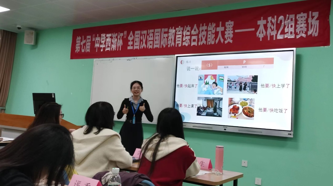 经过校内两轮选拔,公司太阳成tyc122cc集团汉语国际教育专业员工殷锦莹、余悦和汉语言文学专业员工颜景容组成的代表队进入全国决赛。11月22日,代表队在指导教师刘连海、戴楚洁带领下远赴四川,两日后,在四川大学与来自全国的各大高校队伍一同进行了最终决赛。比赛分为视频展示、现场讲课和专业知识测试三个环节。
