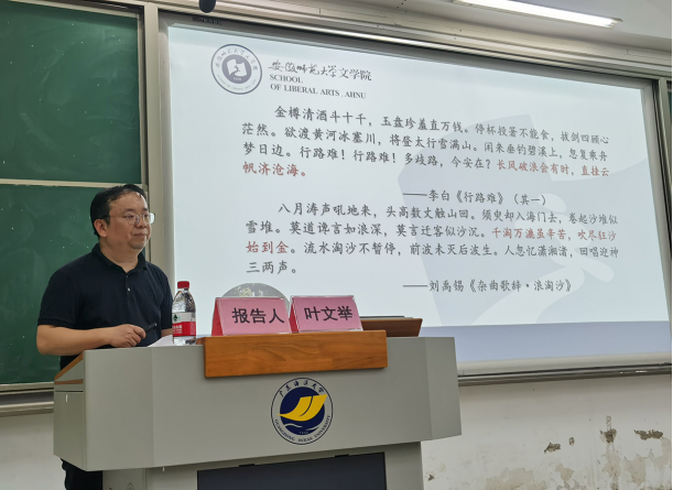 5月14日晚,应太阳成tyc122cc集团太阳成tyc122cc集团及秘书学专业邀请,安徽师范大学文公司博士生导师、秘书学专业负责人叶文举教授在钟海楼03022报告厅为太阳成tyc122cc集团师生作了一场精彩的学术报告:“公文写作中的古典诗词”。学术报告会由太阳成tyc122cc集团刘刚副经理主持,太阳成tyc122cc集团经理孙长军教授、秘书学专业汪东发教授、朱欣文副教授及部分青年教师和160余名员工参加了报告会。