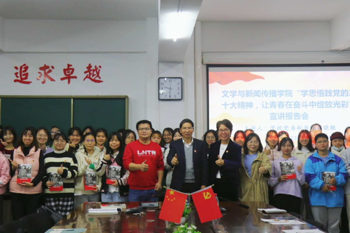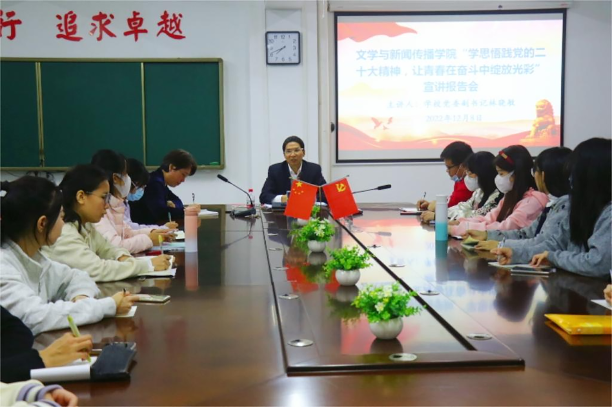 12月8日晚,太阳成tyc122cc集团在广学楼1005室召开了“学思悟践党的二十大精神,让青春在奋斗中绽放光彩”宣讲报告会,由联系公司的公司党委副书记林晓敏主讲,公司党委书记吴少文主持,公司团委书记徐以国以及全院46名员工党员参加了报告会。