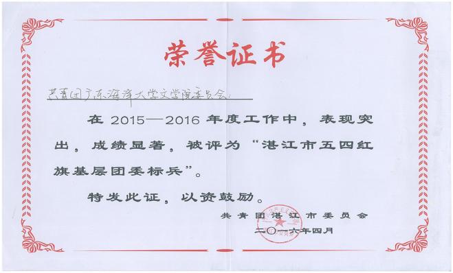 2015-2016年度湛江市五四红旗基层团委标兵