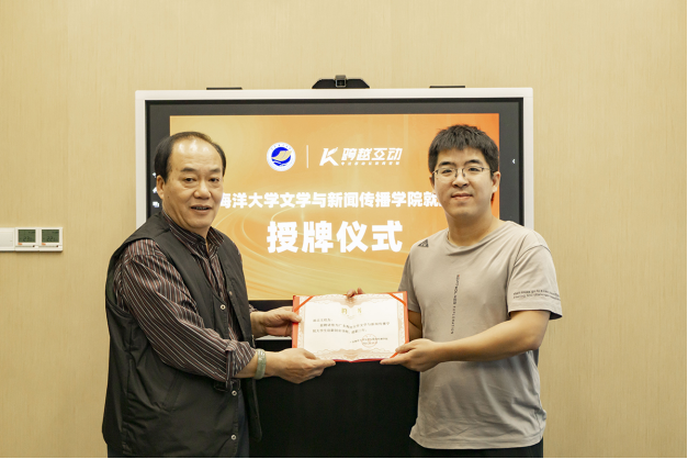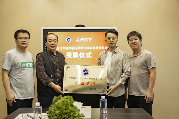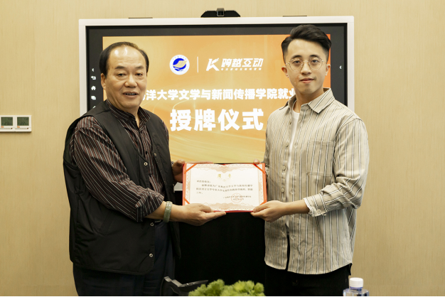 阮彭林书记为广东跨越互动传媒有限公司颁发就业基地牌匾