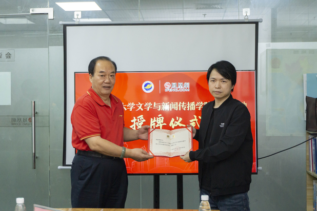 阮彭林书记为凤凰网广东中心颁发就业基地牌匾